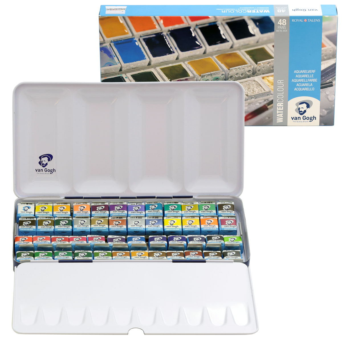 Umfangreiches Van Gogh Aquarellfarben-Set mit 48 halben Npfchen im Metallkasten. Royal Talens Van Gogh Aquarellkasten mit 48 Npfchen Bestellnummer. Van Gogh Aquarellfarben die sich durch ihre gute Verarbeitbarkeit und die krftigen reinen Farben auszeichnen.