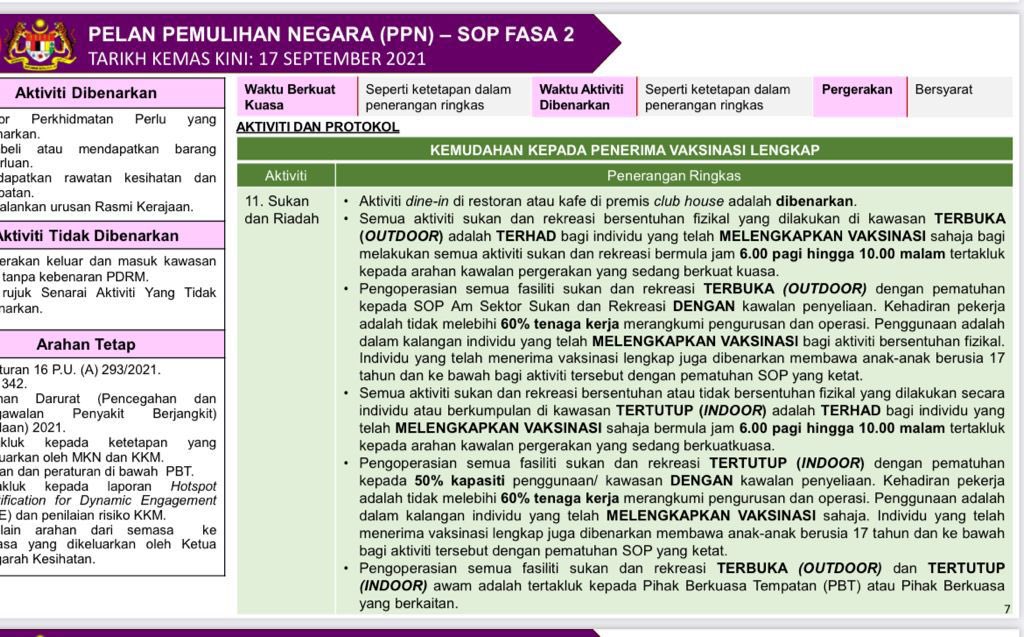KBS to look into proposal to build sports school for PwDs. There has been a miscommunication on gyms reopening today Sept 17. Gyms in states under Phase 2 of the National Recovery Plan NRP can now reopen with 50 per cent capacity and in a.